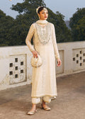 This stunning white long embroidered chiffon shirt, a masterpiece that effortlessly combines sophistication with modern charm. The shirt boasts intricate embroidery that graces the fabric, creating an ethereal and refined aesthetic. The embellished neckline adds a touch of opulence, drawing attention to the collarbone and framing the face with grace. Paired seamlessly with the chiffon dupatta, this ensemble exudes a sense of delicate allure. The dupatta, adorned with four-side lace detailing, enhances the overall appeal with its subtle sophistication. The laces add a touch of intricacy to the edges, providing a graceful finish that complements the embroidered shirt beautifully. The Korean culottes offers a modern twist to the traditional attire, ensuring both style and ease of movement. The combination of the white shirt, chiffon dupatta, and Korean culottes pants creates a harmonious blend of tradition and contemporary fashion.